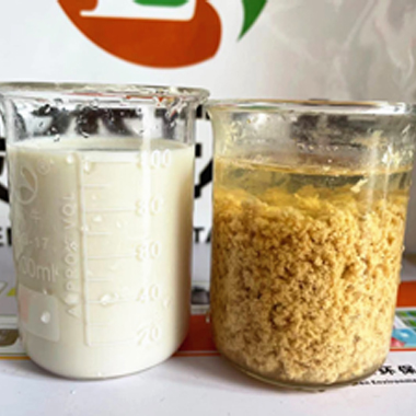 綠森環保技術團隊應某化妝品客戶要求上門技術服務,現場給客戶廢水破乳劑中試。客戶廢水:沐浴露廢水,特點:含有乳化劑、增稠劑、抗氧化劑、防腐殺菌劑和香精色素等,廢水顏色:淺黃色。使用破乳劑破乳后廢水上清液清澈透明,如下圖       &nbs···